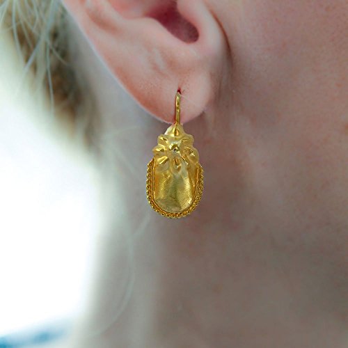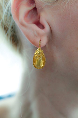 -. Brand : Chen Fuchs Jewelry -. Color : Yellow -. Department : Women -. ProductGroup : Guild Product -. ProductTypeName : GUILD_JEWELRY -. Title : 1" Long 24 Karat Yellow Gold Plated Silver Ancient Greek Style Dangle Earrings Ooak Handcrafted Jewelry Gift For Women
