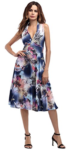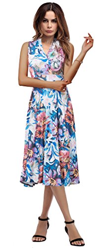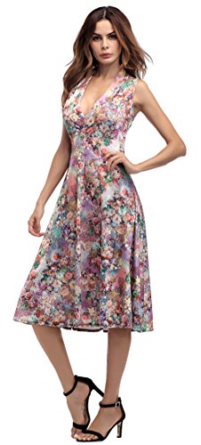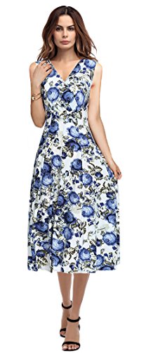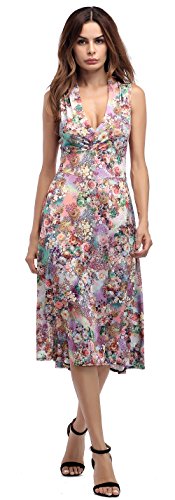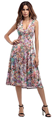 Sarin Mathews Women's Summer Floral Print V Neck Empire Waist Party Midi Dress Item Type: Dress