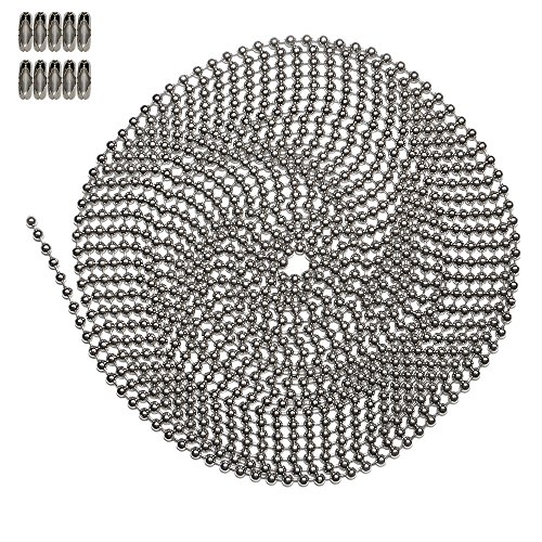 10 Foot Length Ball Chain, #3 Size, Nickel Plated Steel, & 10 Matching Connectors