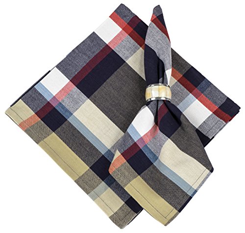 100% Cotton Blue Red & Tan Plaid 22"x22" Napkin, Set of 6 - Cottage