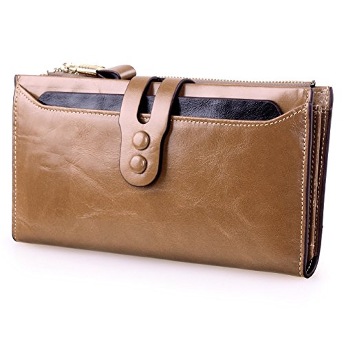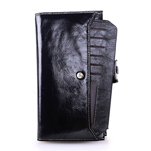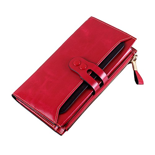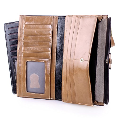 -. Title : Covelin Women's Large Capacity Luxury Waxy Genuine Leather Card Purse Bifold Wallet
