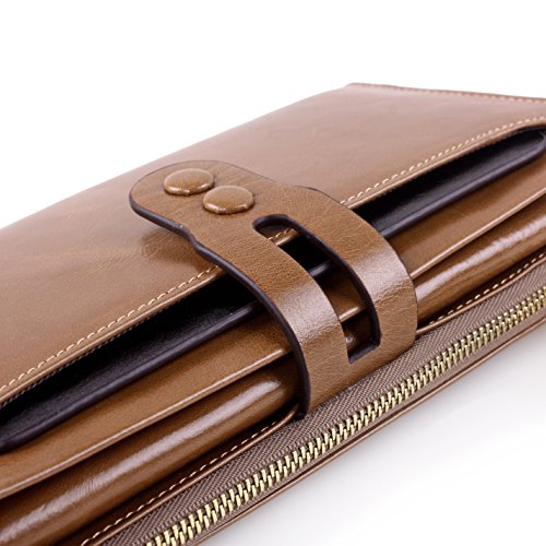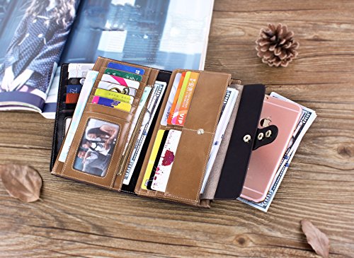 -. Feature : DURABLE MATERIALS: genuine soft cowhide leather, the lining is high class polyester. Snap closure. / BEAUTIFUL EXTERNAL: Simple designed with pure color and exquisite texture, seems well made and the hand feeling is great! / ROOMY INTERNAL: Practical Wallet! Features with a removable credit card holder, with large capacity inside. 1 zippered pockets for money, 17 slots for cards and 2 slots for photos, 4 slots for paper money. Just get all your money and cards well organized here!! FITS iphone 6 plus! / ADVANTAGES: genuine leather, large capacity and multifunctional design. This is a wonderful gift choice for you and your friends. / Approximate Dimension: 7.5" x 3.9" x 0.98" (Length x Width x Thickness). Perfect choice if you want a durable wallet with large capacity!