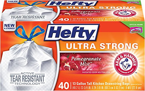 -. Title : Hefty Ultra Strong Trash Bags (Pomegranate Mist, Tall Kitchen Drawstring, 13 Gallon, 40 Count)