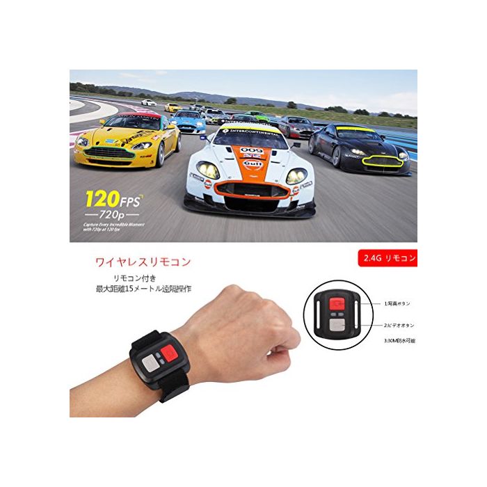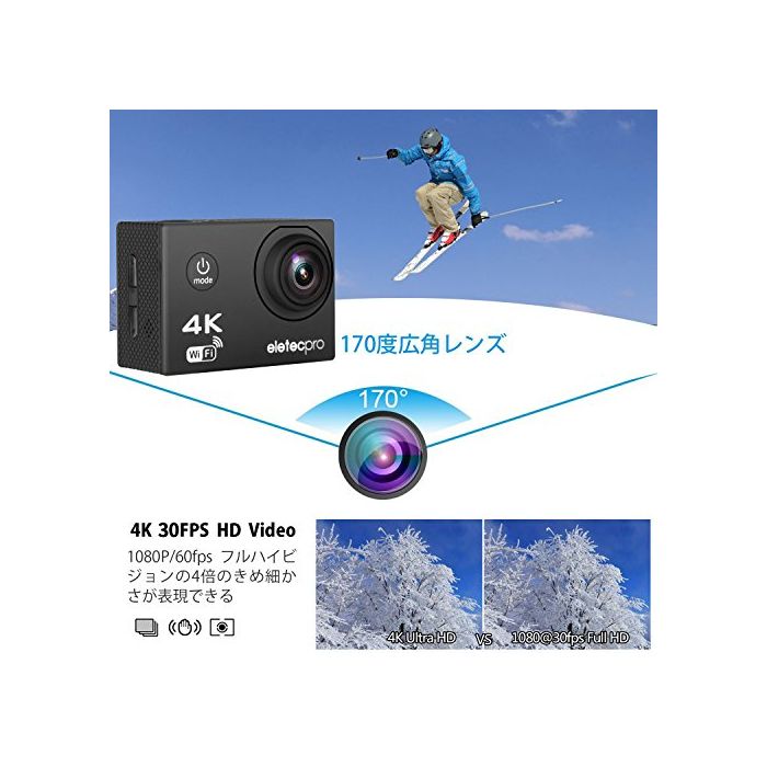 원본상품명: アクションカメラ EletecPro 4K WIFI搭載 CMOSセンサ 2インチ液晶面 170度角 30m防水 1200万素 2.4G無線RF 空撮やスポツに最適 予備一つ900mAhバッ