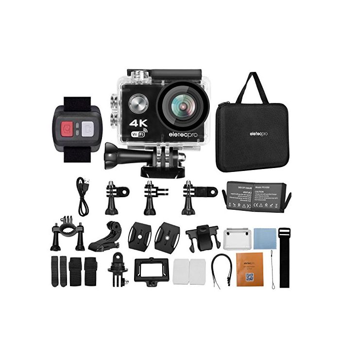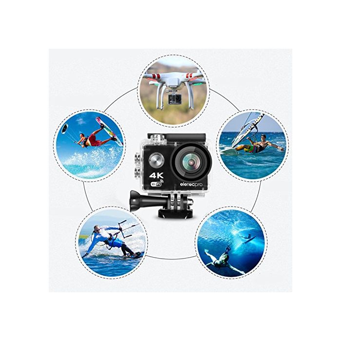 액션 카메라 EletecPro 4K WIFI탑재 CMOS센서 2인치 액정 화면 170도 광각 30m방수 1200만 화소 2.4G무선RF 하늘촬이나 스포츠에 최적 예비 하나900mA