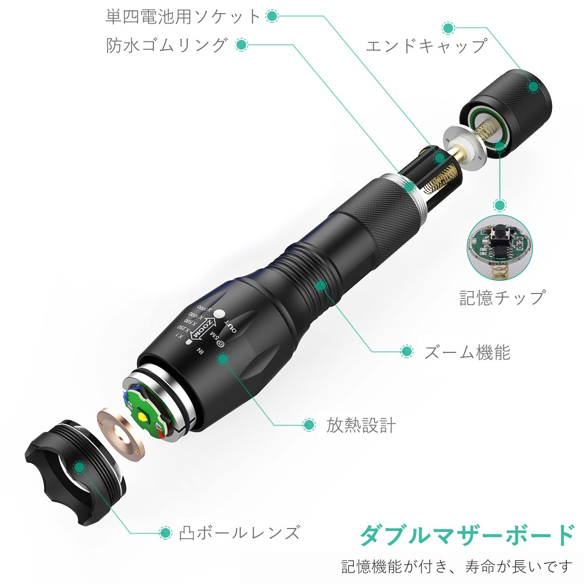 ZOOM IN: By concentrating a single point of light, you can irradiate far away with powerful light.
