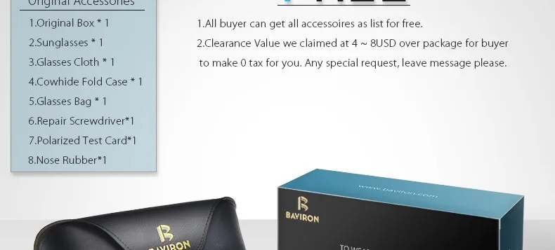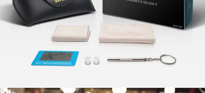 Eyewear accessories:Box,Cloth,Case,Bag,Repairing Screwdriver,Test card,Nose Pad
