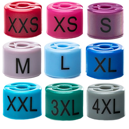 -. Title : Professional Quality 450 Piece Hanger Size Marker Set (XXS-4XL) 50 of Each Size + Carry Case, Size Markers Perfect for Closet/Rack Organization