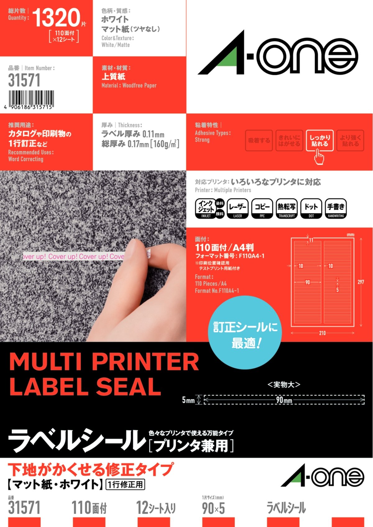12 sheet A4 size 110 plane with four sides margin modified type matte paper white hide-One (A-one) label seal [printer combined use] base (1 320 pieces) 31 571 (japan import)