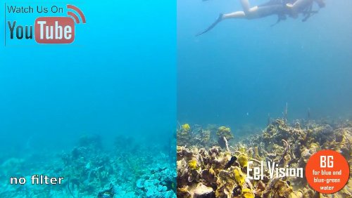 BG (for blue and blue-green water) is our most versatile filter! Recommended for blue and blue-green waters, from 20 feet (6 meters) to 60 feet (18 meters). Can also be used in slightly green waters. Well balanced color compensation and little exposure loss.