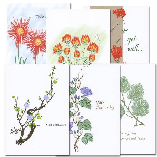 Get Well and Sympathy Card Assortment - box of 12 cards & envelopes, 2 each of 6 designs