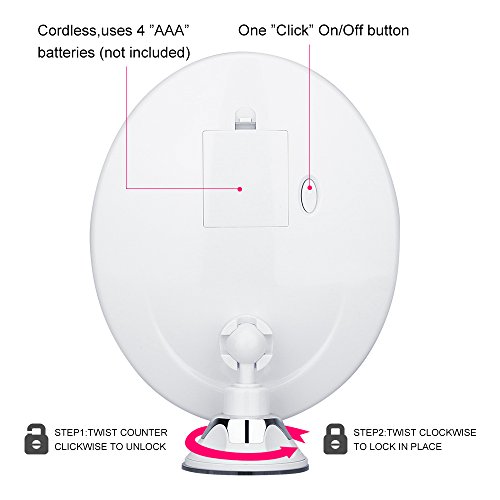 Innovative Locking Design Our strong Easy-Lock suction cup allows you to securely attach this mirror on any clean and flat surfaces in the bathroom. It takes no more than 3 seconds to install this mirror. Simply attach, twist, and lock the mirror in place.
