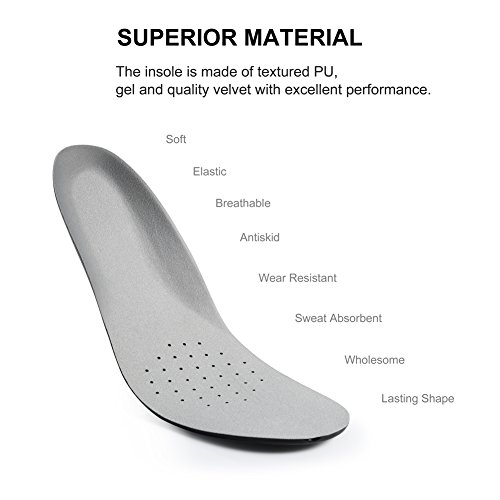 MATERIAL - Uarter Insoles are made of textured PU, gel and quality velvet with excellent high rebound performance; soft, elastic, breathable, wear resistant and wholesome