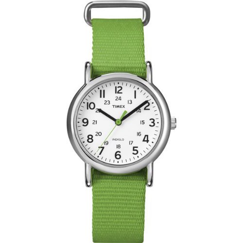 -. Title : Timex Women's T2N835 Weekender Mid-Size Slip Thru Strap Nylon Green Watch