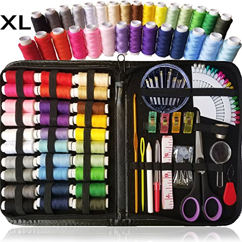 - ► SEW SIMPLY TO CHOOSE, #1 best choice High quality DIY travel sewing kit a must have, premium sewing supplies in XL Zippered durable PU leather Case, XL Spools of Thread, Great gift for kids and adults, summer camp home and travel