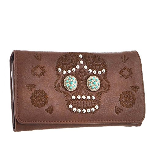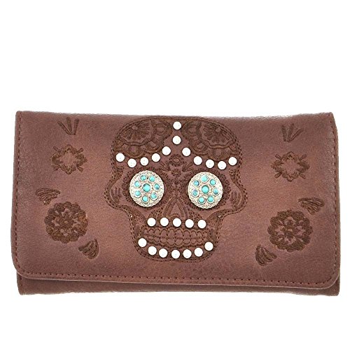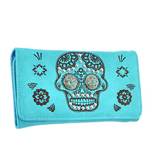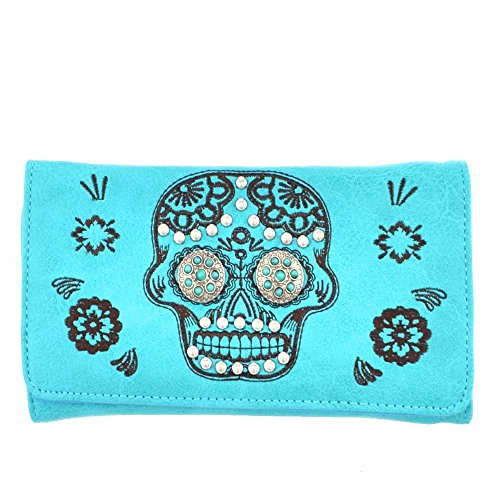 (Luv Dat)/Accessories/Wallets, Money Key Organizers/DIRECT FROM USA/(B11-3-bx)Sugar Skull With Turquoise Stone Concho Trifold Wallet-MJ7006