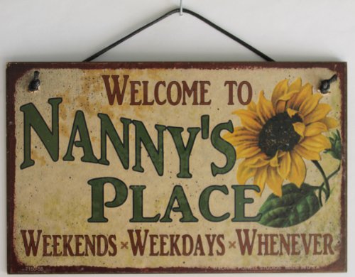 5x8 Vintage Style Sign with Sunflower Saying, "Welcome to NANNY'S PLACE Weekends, Weekdays, Whenever " Decorative Fun Universal Household Signs from Egbert's Treasures