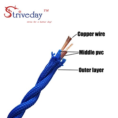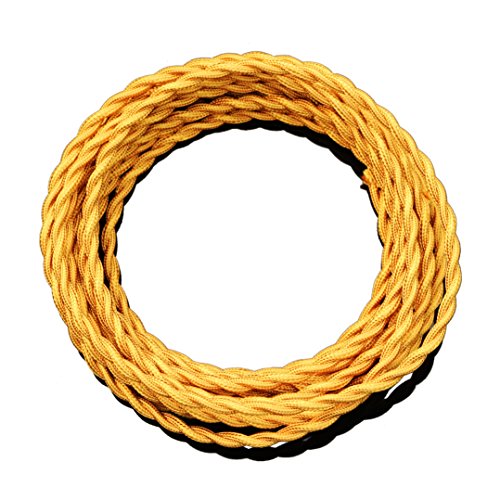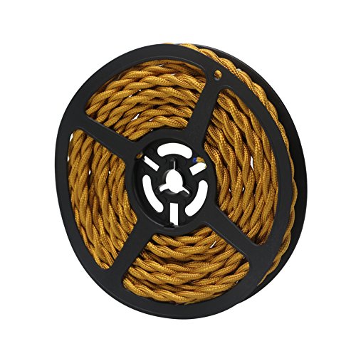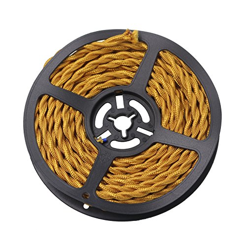 Striveday™ 5Meter/16.4FT Twisted Cloth Fabric Electrical Cord for Vintage and Antique Lamps DIY, Rayon Covered Wire For Industrial Vintage LED Bulb(Gold)