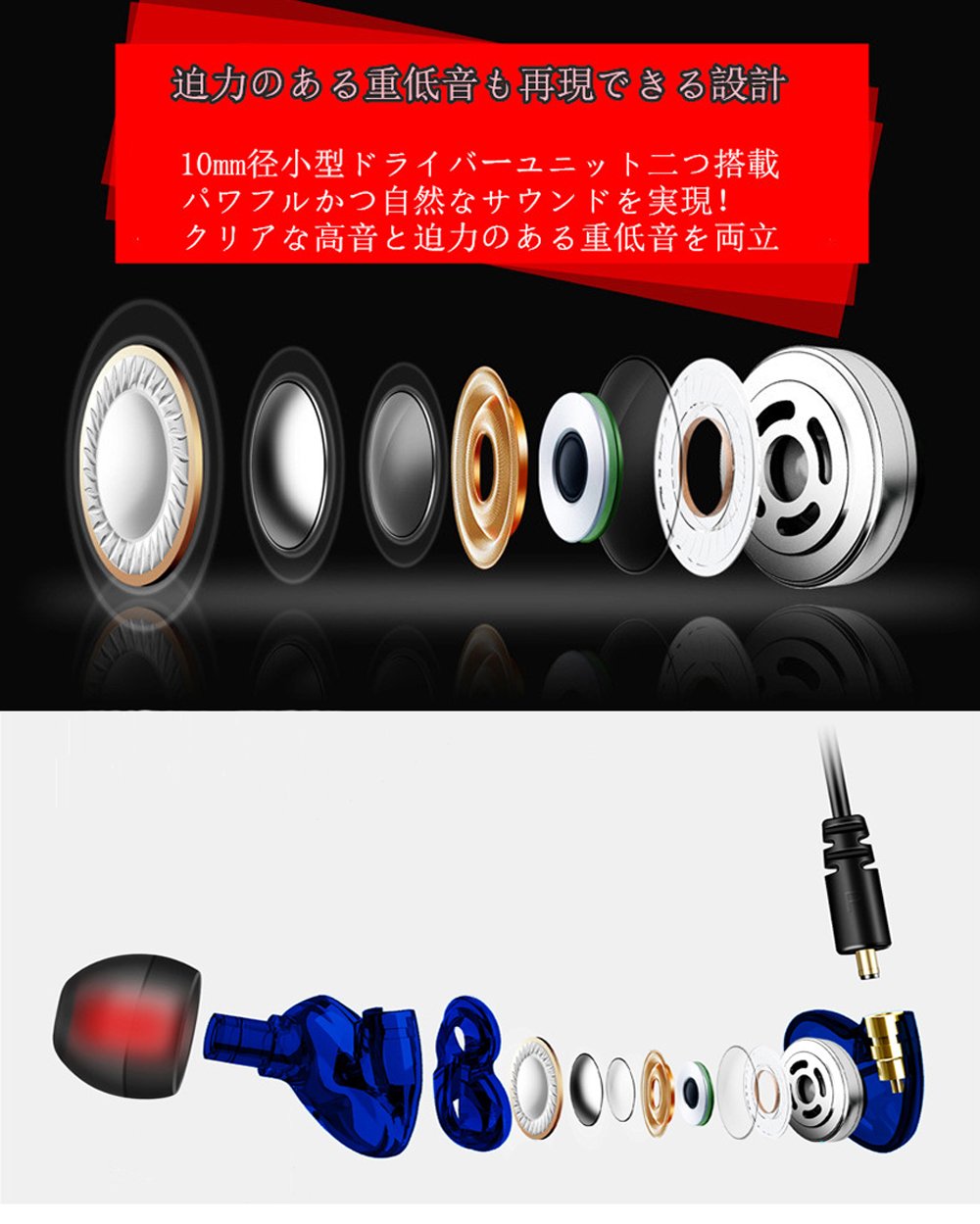 【価格以上の音質】特定の音域を強調することなく、高中低まんべんなくバランスの良いサウンドで音源を忠実に再現してくれます。カナル型で遮音性が高く、またソフトな丸型ケーブル(約1.2m)を使っており使用中にケーブルがこすれる際に響いてくるタッチノイズもかなり低減されています。遮音性と音漏れ防止に優れているので電車やエレベーターなど公共の場所で使用しても心配はいりません。
