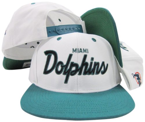 MIAMI DOLPHINS WHITE/TEAL SCRIPT TWO TONE ADJUSTABLE SNAPBACK HAT / CAP
