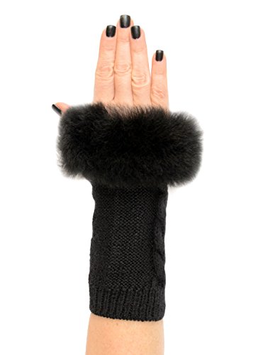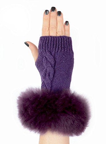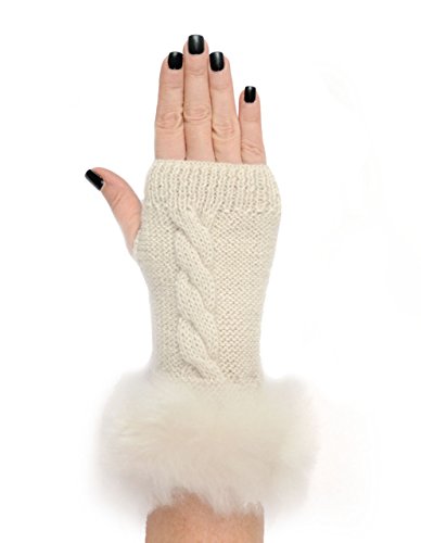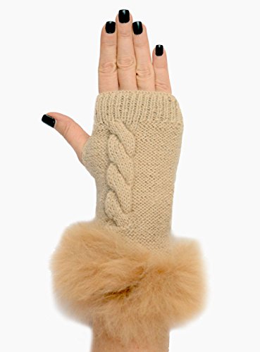 Product Description Cuddly soft cable texting gloves crafted from ultra-luxe, hand-knit baby alpaca, leaving your fingers free for texting. Mitten can be worn with fur cuff at arm or flipped and worn with fur at hand.