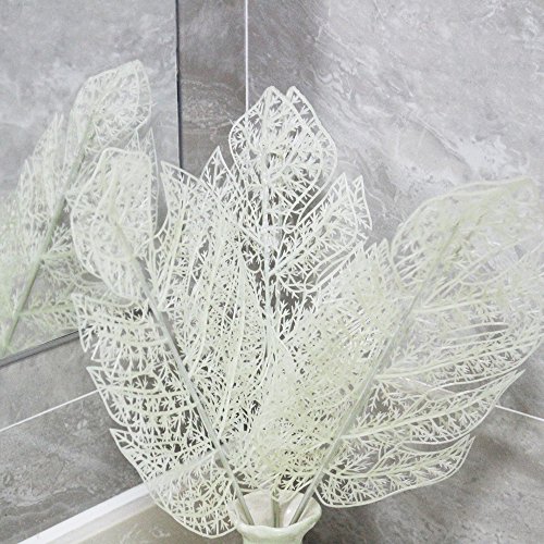LJY 20 Pieces Artificial Tropical Palm Leaves Simulation White Leaf Plants for Home Christmas Party Decoration Flower Arrangement