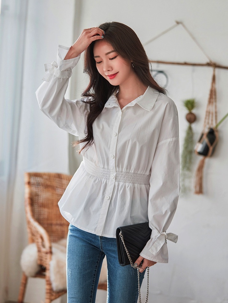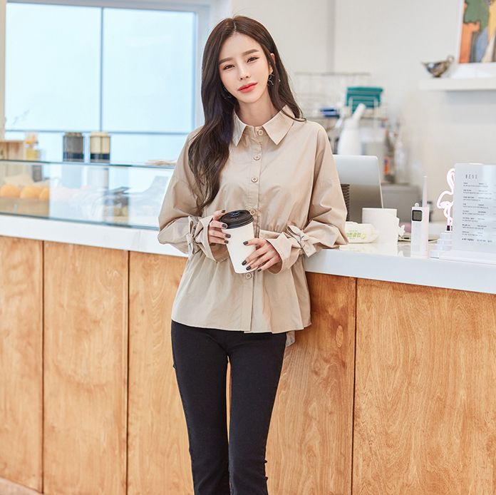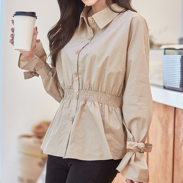 大人っぽく清楚な雰囲気のキレイめ長袖ブラウスです。