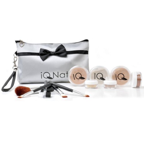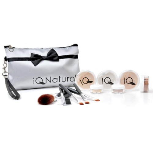 IQ Natural 12pc XL selection is a unique kit that will help transform your face in minutes. This easy start kit has everything you need to achieve a complexion that is beautiful while obtaining natural flawless look. This kit includes easy step by step application tips. Set includes, 2X Full Size Mineral Foundations 6g, Setting veil 6g, Bisque concealer 1.5g, Bronzer 3g, Eye shadows 1.5g and IQ Naturals Exclusive Black with White Polka Dot Cosmetic Bag. All Eye shadows, blush, and bronzer shades are pre-selected by our esthetician and makeup artist for the foundation color shade you select at checkout.Feature