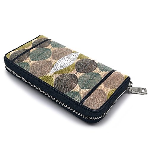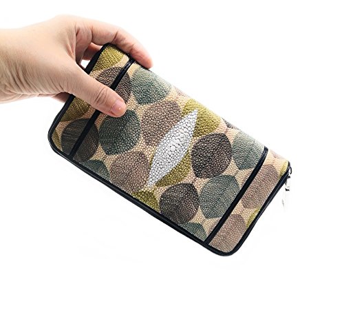 Binding : Apparel Product Description - Made of stingray genuine leather - Size long folded pocket wide 10.5 cm. long 19 cm. thickness 2.5 cm. - 4 channel paper Dollar banks - 10 card holders - 1 window holder for photo - 1 zipper for coins - Lining real cow leather - 1 zipper closure good quality smooth slip