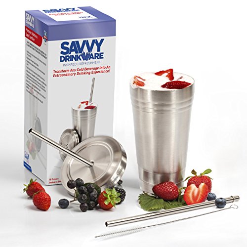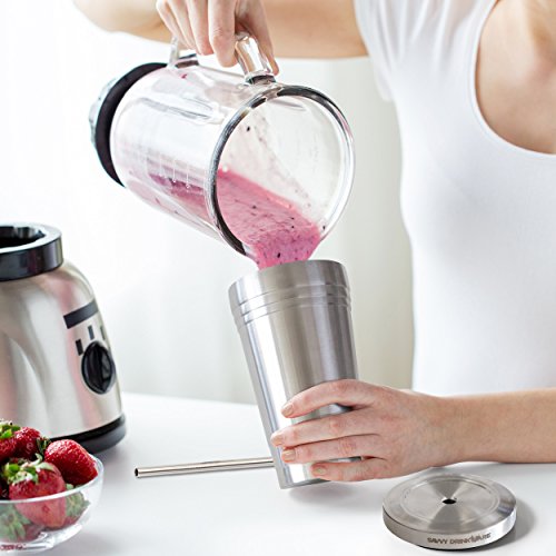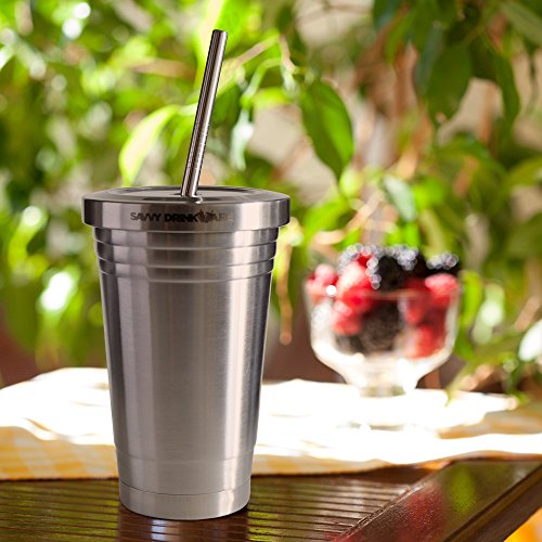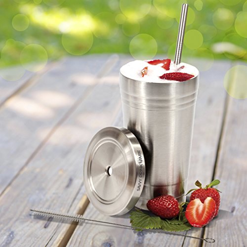 Stainless Steel Tumbler with 2 Straws and Cleaning Brush + Splash Proof Lid - 16 Oz Travel Smoothie Cup - Double Wall Insulated Mug Perfect for Smoothies, Milkshakes, Protein Shakes, Iced Tea & Coffee - By Savvy Drinkware B012HR23PI