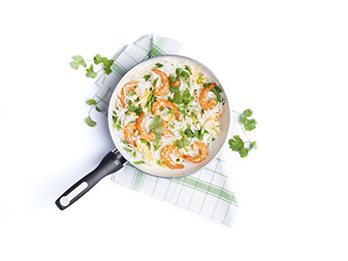 The GreenPan Rio collection brings a touch of color to your kitchen. The Rio 12 Inch Ceramic Non-Stick Fry Pan in Black adds a subtle touch of elegance, complete with Thermolon healthy ceramic non-stick coating for ease. Rio offers you a tasteful mix of optimal heat distribution and 100% cooking and cleaning convenience. After all, GreenPan quality also extends to the details, from the stay cool Bakelite handle to the heat retaining base.Feature