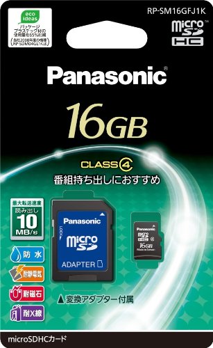 Panasonic 16GB microSDHC Class 4 Memory Card with microSD-SD adaptor | RP-SM16GFJ1K | 10MB/s transfer trate (Japan Import)