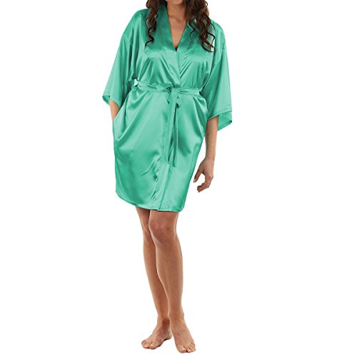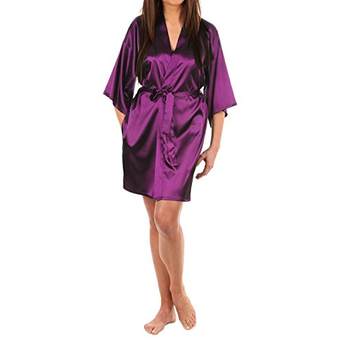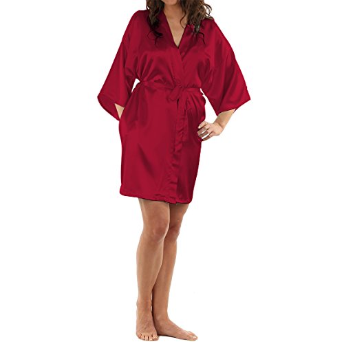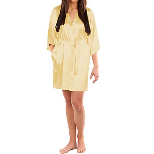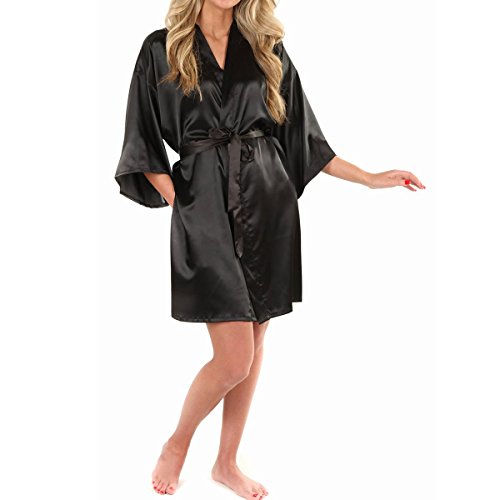 LAPAYA Women's Kimono Robe Knee Length Bridal Lingerie Sleepwear Short Satin Robe