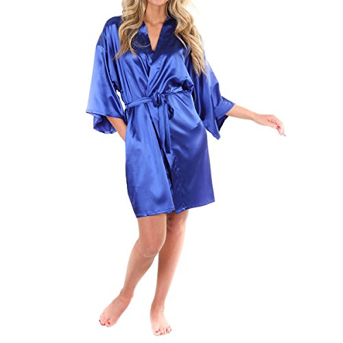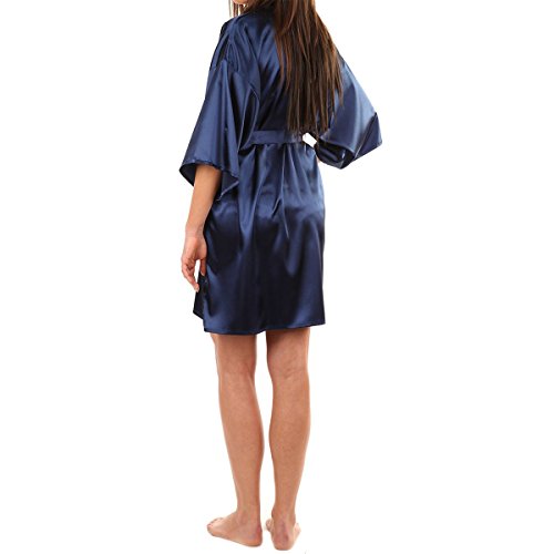 LAPAYA Women's Kimono Robe Knee Length Bridal Lingerie Sleepwear Short Satin Robe, Dark Blue, 4-6