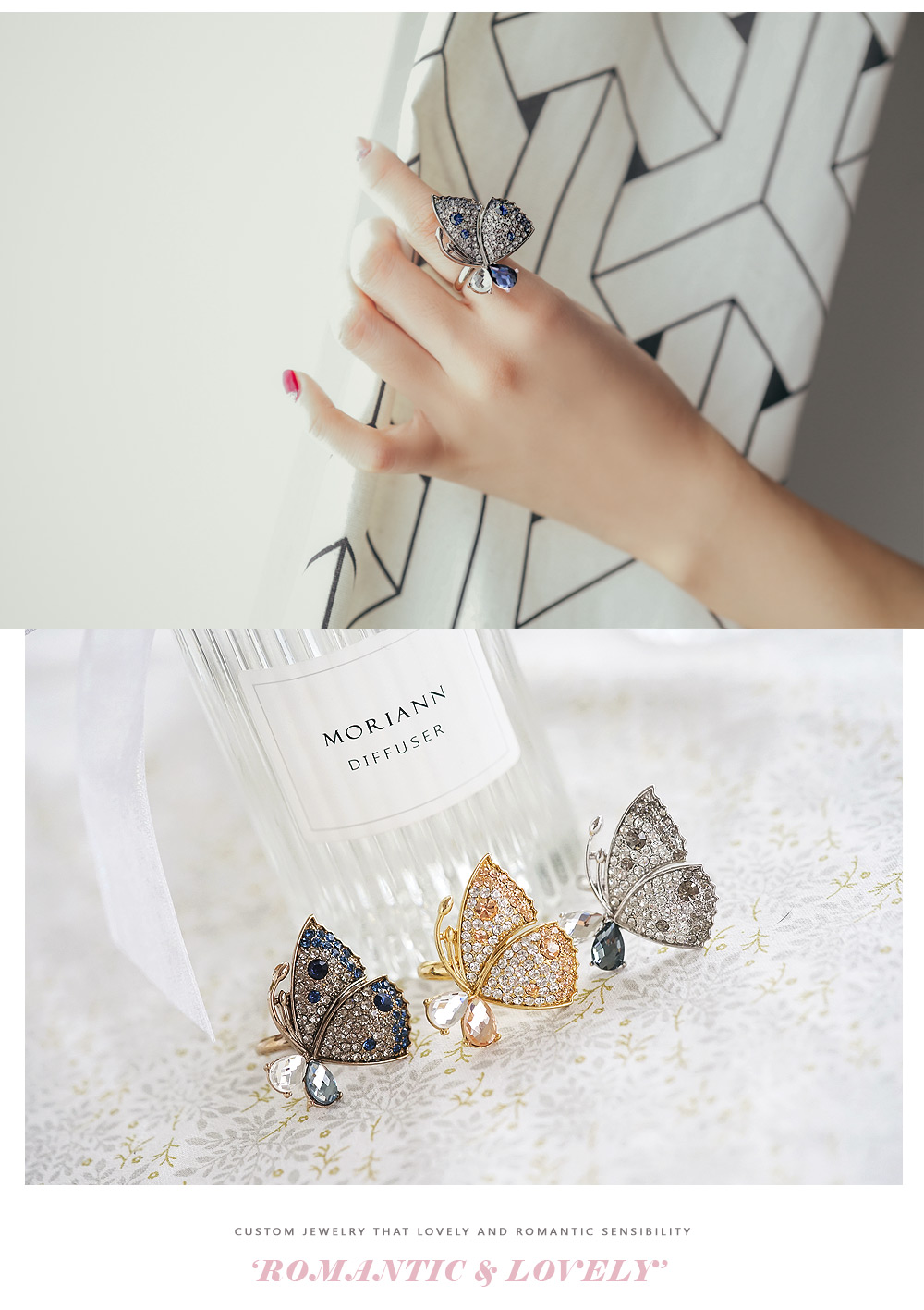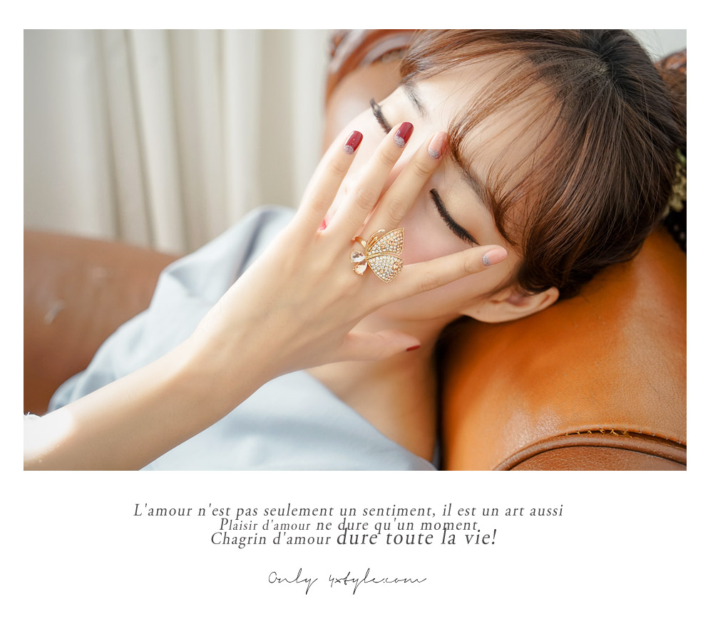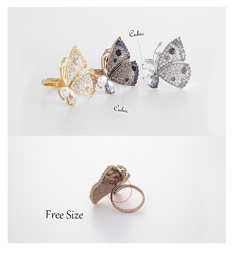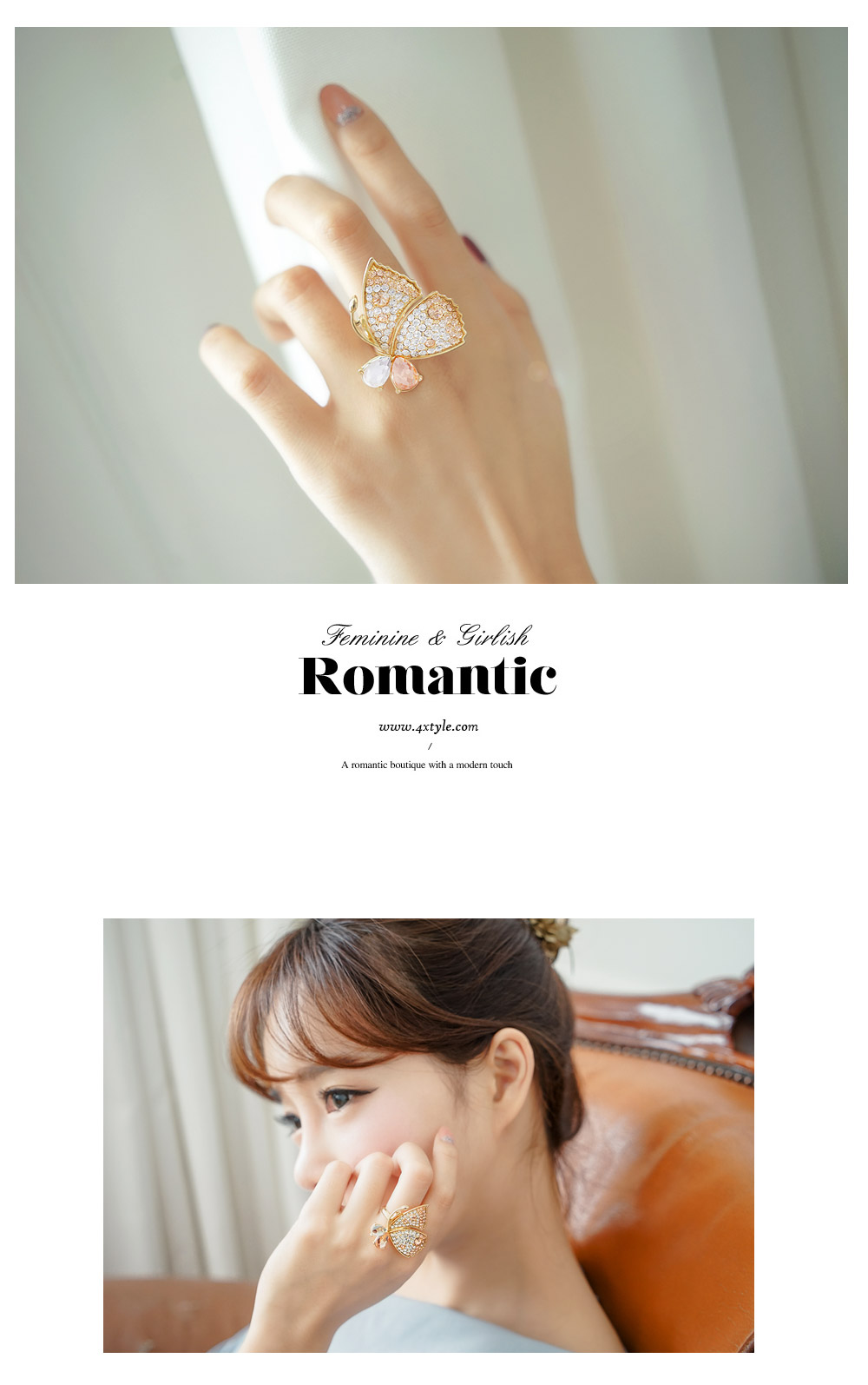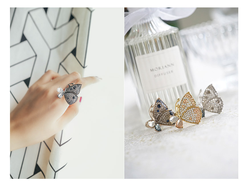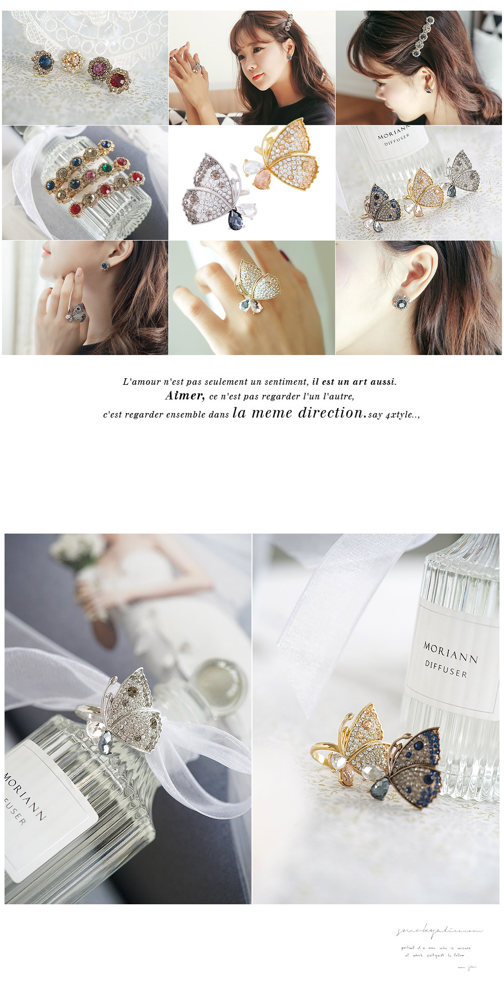 화사하고 생기있는 컬러감과 촘촘히 셋팅된 큐빅이 우아하면서 고급스러운 차밍 버터플라이 반지입니다.