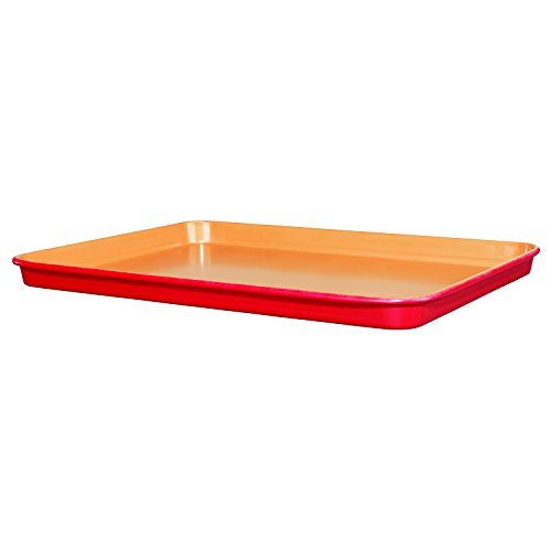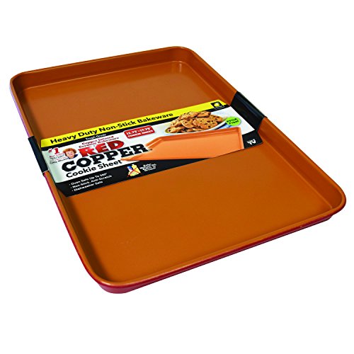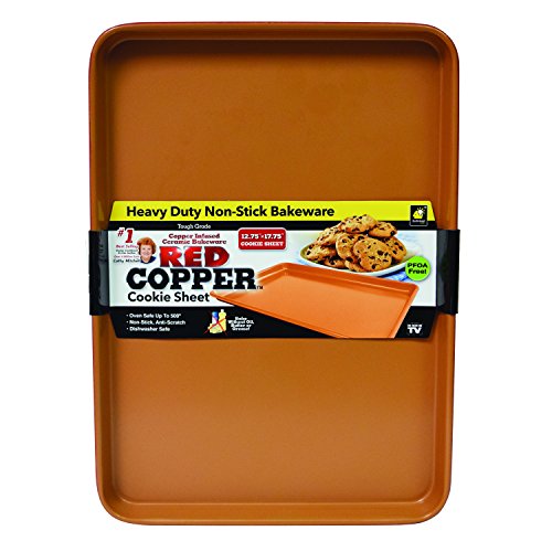 Studio : BulbHead Publisher : BulbHead Binding : Kitchen Product Description Goodbye baked on messes. Cookies are fun to bake. But not when they stick to the bottom of the pan. Its time to retire your subpar cookie baking pans and get the Red Copper Cookie Sheet! This copper infused ceramic bakeware has a non-stick, scratch-resistant surface. Your cookies will slide right off the pan! No more struggling. No more scraping. When you use Red Copper, there's no need to use added oil, butter, or grease. This cookie half sheet is oven safe up to 500A DegreeF. Plus, it's PFOA-free, so harmful chemicals won't seep from the non-stick coating into your food. More than cookies. Use your Red Copper Cookie Sheet for baking more than cookies. It's also great for: Roasting veggies, Meats, Biscuits, Dry herbs, Pizza, Dessert Bars And so much more! Good to know. Always season your Red Copper Cookie Sheet prior to first use (instructions included with cookie sheet). To maintain exceptional performance of your Red Copper bakeware, we recommend that you repeat the seasoning process at least twice a year. If the performance of the non-stick coating diminishes, repeat the seasoning process. Although this bakeware is dishwasher safe, hand washing in warm soapy water is recommended. Includes one 12.75" x 17.75" non-stick cookie sheet. Packaging may vary. Item may not ship in retail packaging. Enjoy baking cookies again. Upgrade your subpar baking sheet to a Red Copper Cookie Sheet!. 0