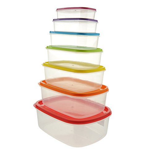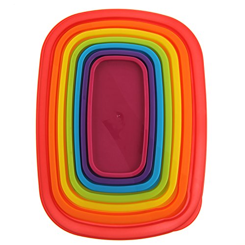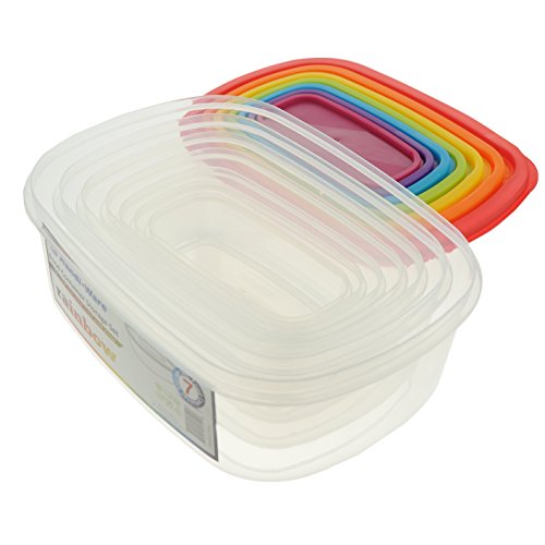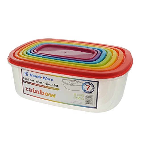 Handi-Ware Value Rainbow Food Container Storage Set - 7 Containers with 7 Colorful Lids - BPA-Free, Non-Toxic, Dishwasher-Safe, Microwave-Safe - Great for Everyday Use! - by Unity (Rectangle)