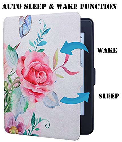 Aimerday Kindle Paperwhite Case Cover - The Thinnest and Lightest PU Leather Rose Smart Cover Auto Sleep/Wake for all-new Amazon Kindle Paperwhite (Fits all 2012, 2013, 2015 and 2016 Versions)