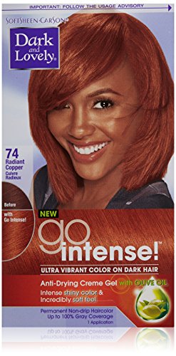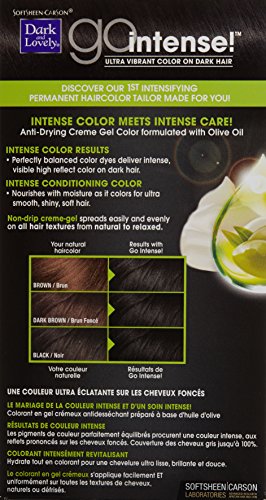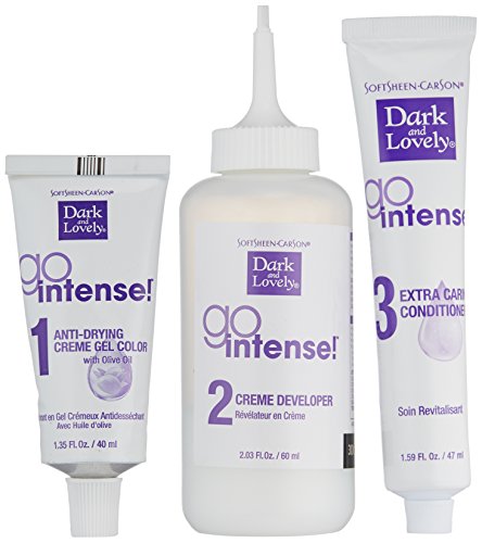 -. Binding : Health and Beauty -. Brand : Dark & Lovely -. Feature : Intense conditioning color / High-impact shine / Ultra softness -. Label : Dark and Lovely -. Manufacturer : Dark and Lovely -. ProductGroup : Beauty -. ProductTypeName : BEAUTY -. Publisher : Dark and Lovely -. Studio : Dark and Lovely -. Title : Softsheen Carson Dark and Lovely Go Intense Hair Color