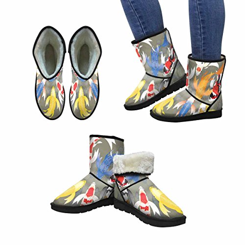 (InterestPrint)/Women's/Boots/DIRECT FROM USA/InterestPrint Women's Snow Boots Stylized Butterfly Koi Fish Swimming In a School Unique Design...
