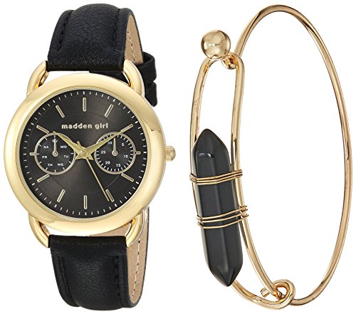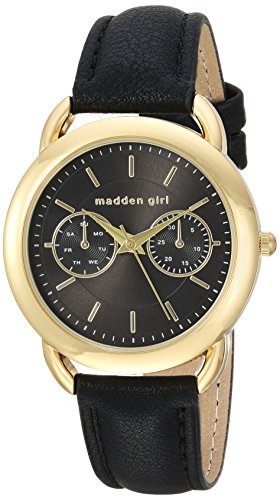 Steve Madden Women's Quartz Gold-Tone Casual Watch, Color:Black (Model: SMGS001G-BK)