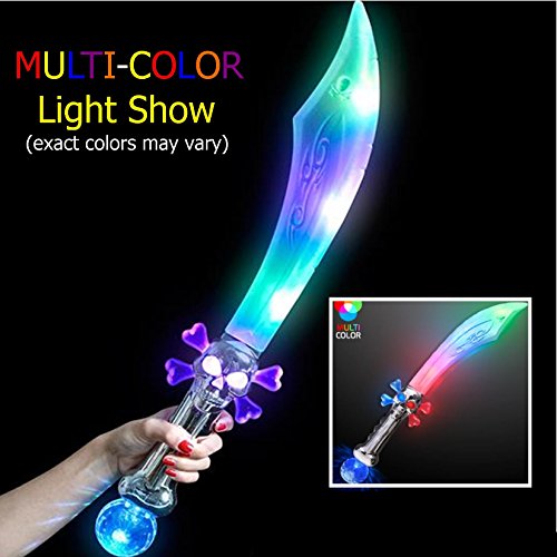 -. Brand : RINO -. Department : unisex-child -. Feature : Serrated 23 inch light up Buccaneer LED sword with multicolor lights and color changing magic ball. / Makes a great Halloween Costume Accessory, birthday present, or Christmas Gift for kids. / Batteries can be replaced which makes a sword that can last for many hours of play! / Recommended for children 5 years and older. -. Label : Rhode Island Novelty -. Manufacturer : Rhode Island Novelty -. ProductGroup : Apparel -. ProductTypeName : CHILDRENS_COSTUME -. Publisher : Rhode Island Novelty -. Size : 23 inches long -. Studio : Rhode Island Novelty -. Title : 23" BUCCANEER MAGIC BALL SWORD