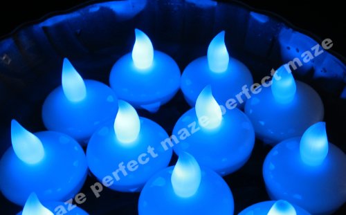 Perfectmaze 12 Piece Home Battery Operated Floating Tealight LED Candles, Great for Wedding Centerpiece, Christmas, Thanksgiving, Party Lights, Set of 12 - Blue