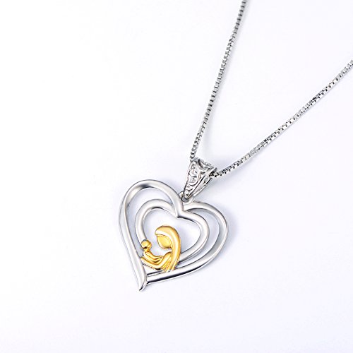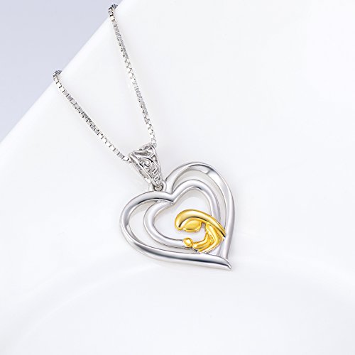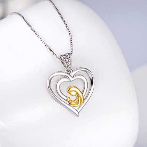 -. Title : Angel caller Mother's Day Gift Heart Pendant 925 Sterling Silver Mother Holding Child Necklace