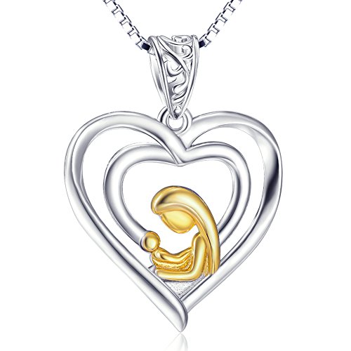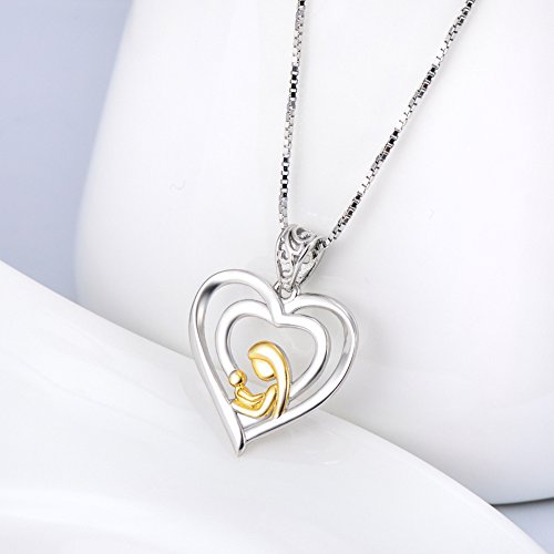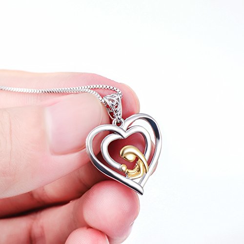 -. Feature : Material:925 sterling silver,yellow gold plated,nickel free and lead free,antiallergy / Accessories:mother and child heart pendant and box chain,pendant size(25*19mm),chain length:18",chain width:0.8 mm / Box chain sP.R.Ing-ring clasp / In-kind shooting,Item's color is match with the picture,there is no color difference / Guarantee:100% satisfaction guaranteed: 30 free risk money back to protect you when you receive any fake or defected order, welcome to test our jewelry