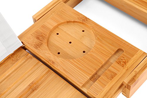 HIGH-QUALITY, SUSTAINABLE BAMBOO CONSTRUCTION: Caddy is made of 100% bamboo for a spa-quality look and feel. Makes for a great gift for anyone you want to pamper.