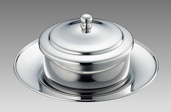 ホテルやレストラン、航空機で使われるシンプルなデザインのオシャレな洋食器です。 製造国:日本 素材・材質:18-8 ステンレススチール 商品サイズ:胴径91mm×皿径147mm×高さ(蓋含)73mm 重量:310g ※サプライヤー直送品 ご注文後2~3営業日後の出荷となります【商品名】渕巻バタークーラー 2601-0000