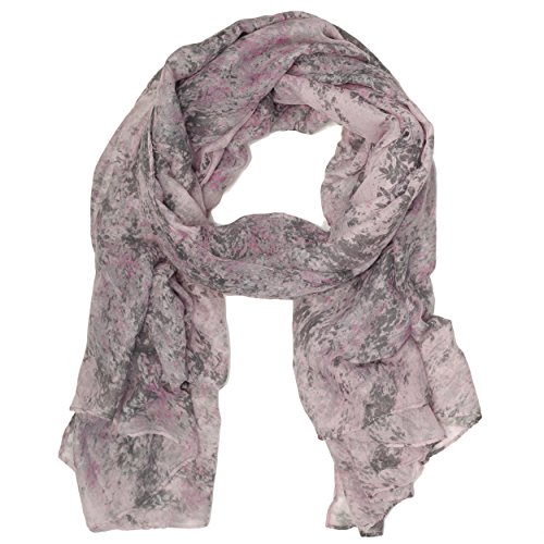 Product Description This modern marbled scarf features a mixture of a variety of colors and paint splatters. It is designed with a color palate that includes pinks, grays, and black. It's a great scarf that can be worn throughout the year. Wear with a black dress or with blue jeans, there's a million ways to wear this stylish accessory. 0