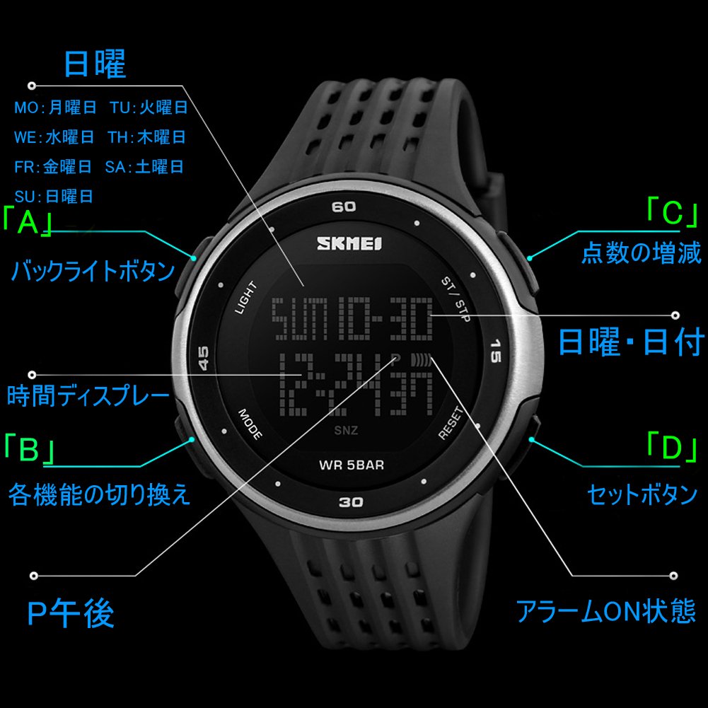 Digital watch Men's waterproof watch led watch Capitalized with sports watch alarm timer etc. Capital letter Cool unisex watch