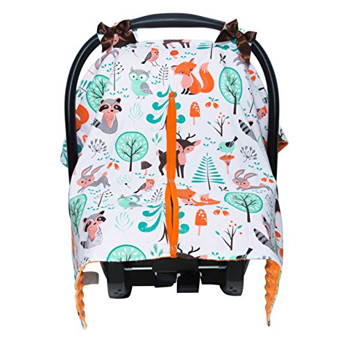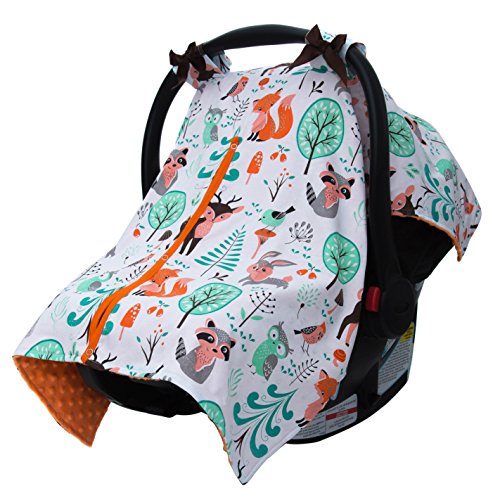 JLIKA Baby Car Seat Canopy Cover - Infant Canopy Cover for newborns infants babies girls boys best shower gift for carseats (White Woodland Animals)